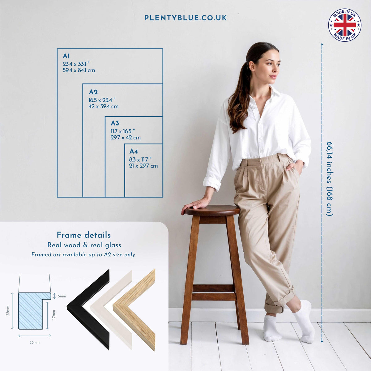 Handmade to order in Surrey by our expert framers. Your framed print will be ready within 3–4 working days and delivered securely with tracked shipping. (A3 and larger framed prints are sent by next-day delivery.)